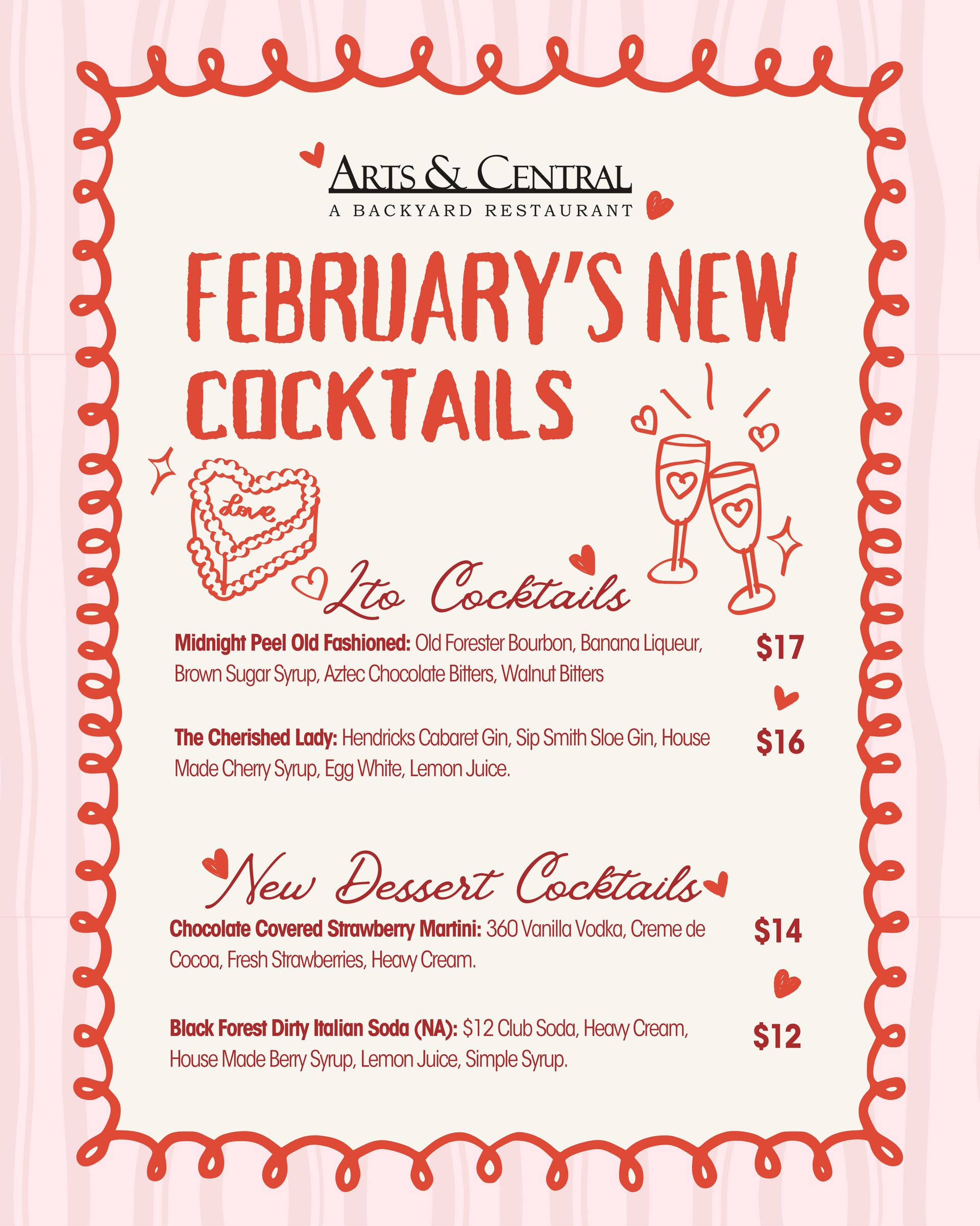 Celebrate February at Arts & Central with art-forward dining, seasonal menus, and curated cocktails!