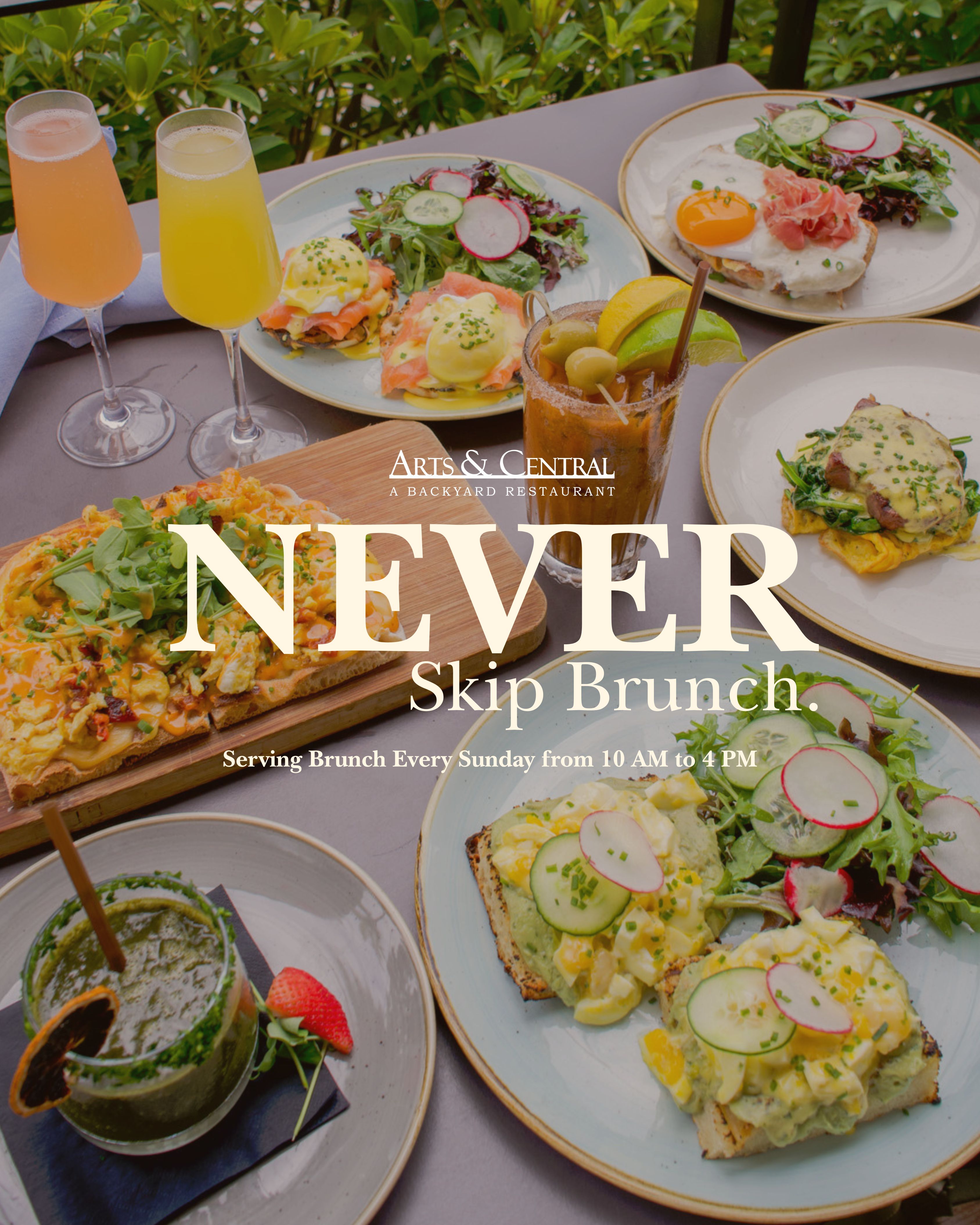 BOGO Mimosas: Sundays, 10 AM–4 PM — Enjoy two mimosas for the price of one and savor our full brunch menu.